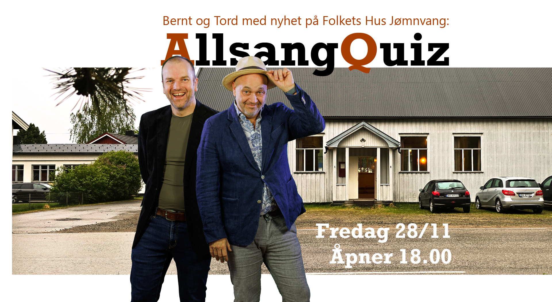 Bernt Torp er kjent fra «Allsang på Tjuvholmen» i Hamar, der han i mange år har ledet publikum gjennom allsang, vitser, skrøner og røverhistorier. Tord Skancke har spilt sammen med Bernt Torp siden de begge var ungdommer, og har ledet allsangarrangementer en rekke steder. De lover deg allsang, quiz, vitser og fanteri denne kvelden på Jømnvang!